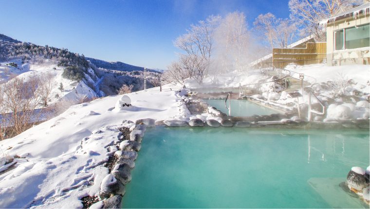 Located 1,800 meters above sea level inside Joshin’etsu Kogen National Park, Manza Onsen is famous for its milky-white water — the most sulfur-rich hot spring in Japan. Known since ancient times for its healing qualities, it offers open-air baths surrounded by mountains and sky. After a long soak, take a scenic drive toward Kusatsu Onsen, known as one of Japan’s most beautiful mountain routes.