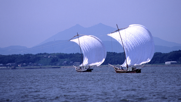 霞浦占了茨城县约三分之一的面积,是仅次于琵琶湖的日本第二大湖。富饶的水域孕育了多样鱼类,也以钓鱼名所闻名。自古以来渔业兴盛,而渔民昔日使用的正是“帆曳船”。迎风鼓满船帆前行的身影,带着一丝怀旧气息,描绘出动人的景致。如今已被修复用于观光,可在土浦市的Lacus Marina出发的游船上近距离欣赏。傍晚时分,帆曳船行驶在被金色夕阳染亮的湖面上,这幅景象正是土浦独有的绝景。
